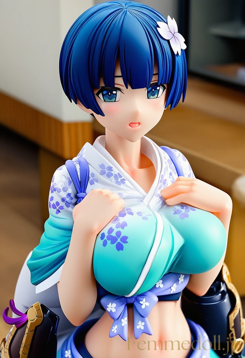 閃乱カグラより、死塾月閃女学館2年生・夜桜をフィギュア風に精密再現したAI生成イラスト集です。短い黒髪に桜の髪飾り、青い瞳、Hカップの豊満な胸と細く引き締まったウエスト、桜モチーフの優美な曲線美を、まるで高級スケールフィギュアのような滑らかな質感と陰影で表現。桜の花びらが舞い散る幻想的な夜の空間で、手甲を残したままの無防備なポーズや、微かに上気した表情、様々な角度からの全身像を30枚収録。真面目でプライド高い忍者少女の、普段は決して見せない艶やかな一面を存分に味わえます。