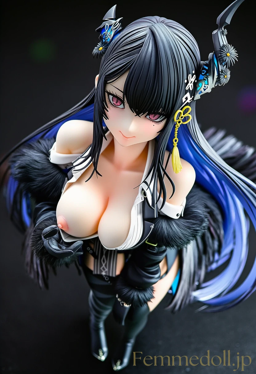 Hololiveの悪魔ディーバ・ネリッサが、ライトバイオレットの瞳を妖しく輝かせ、オフショルダートップから溢れんばかりの爆乳を寄せて誘惑ポーズ。角飾りの黒髪をなびかせ、フィギュアのような立体感で描かれた30枚のAIイラスト集。歌声で心を奪うセクシーな表情と柔らかな曲線が、ファン垂涎の非本番エロスを堪能させてくれます。