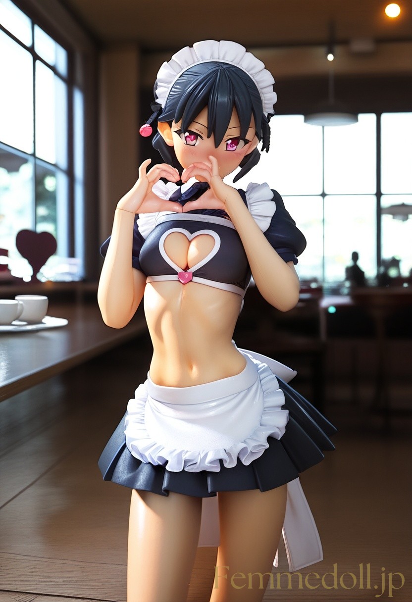 メイドカフェで働く女の子、華奢な体が可愛さを強調している。