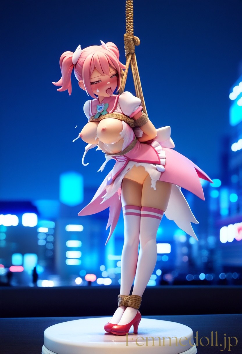 ピンク髪, トロ顔, 大きめの胸, 魔法少女, ピンクの服, 破れた服, はだけた服, 夜, 緊縛, 性液でドロドロ