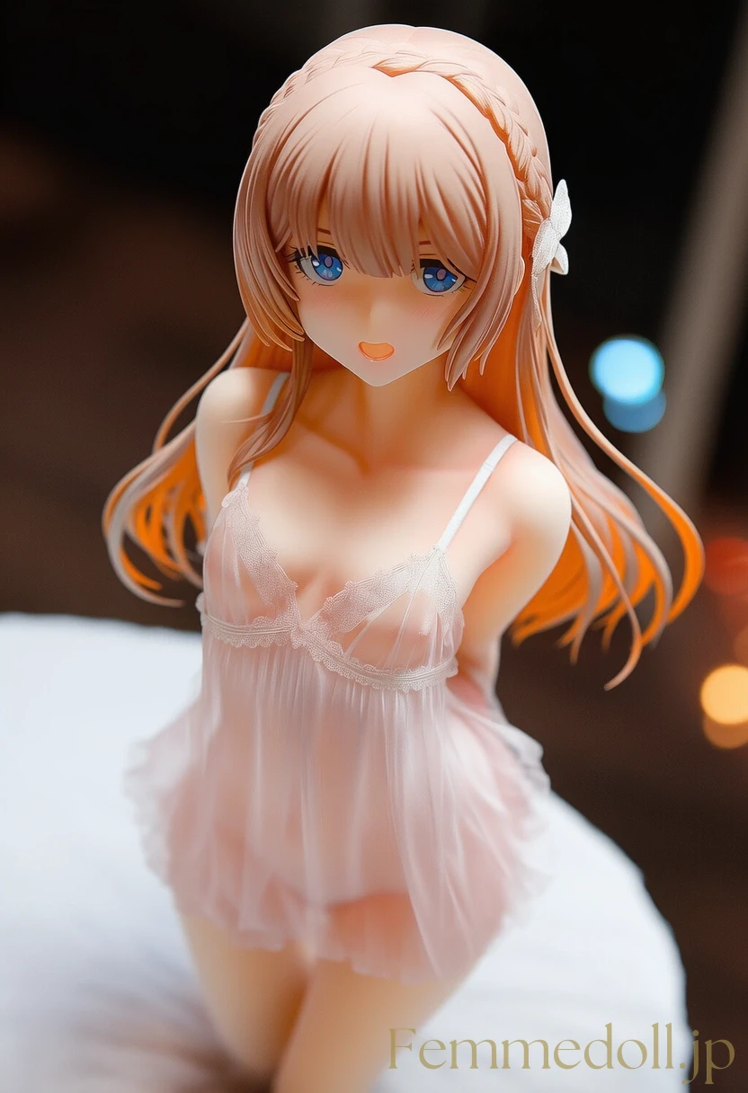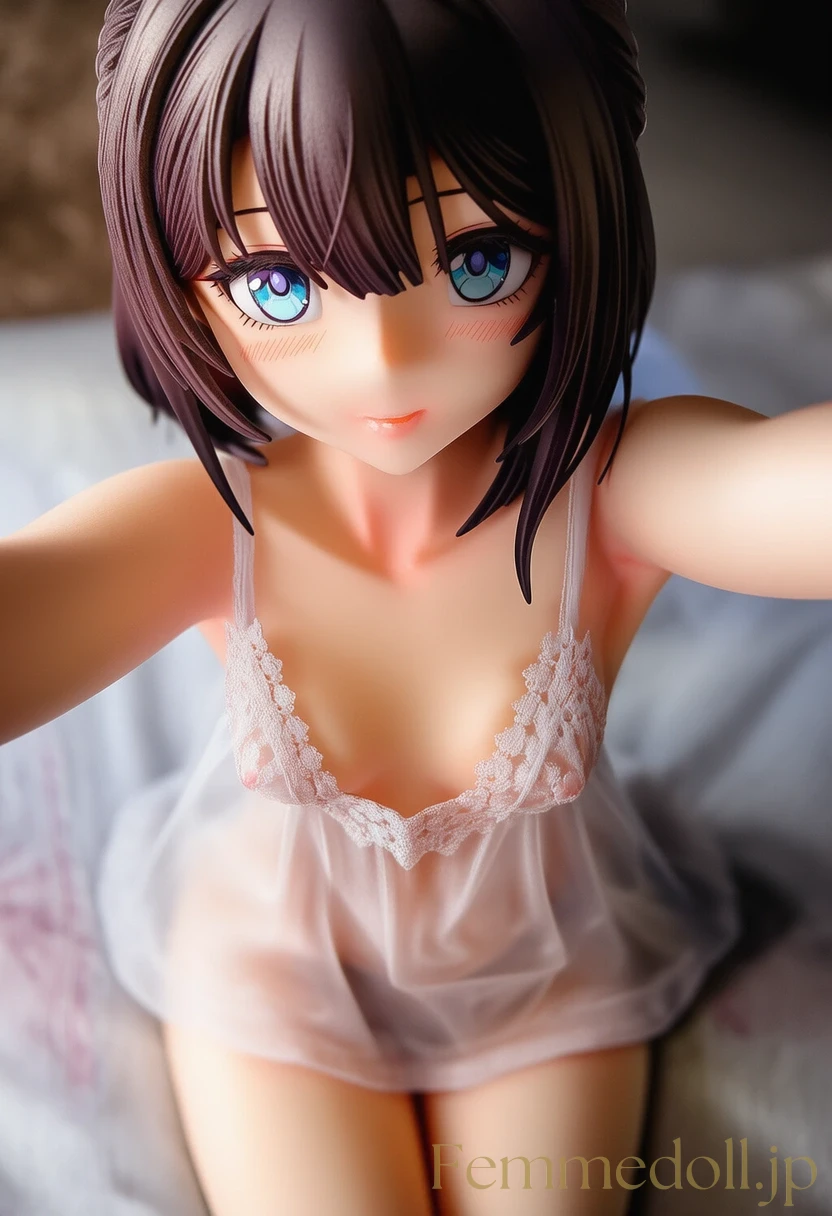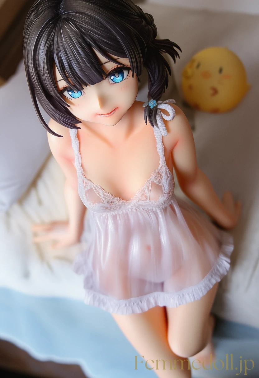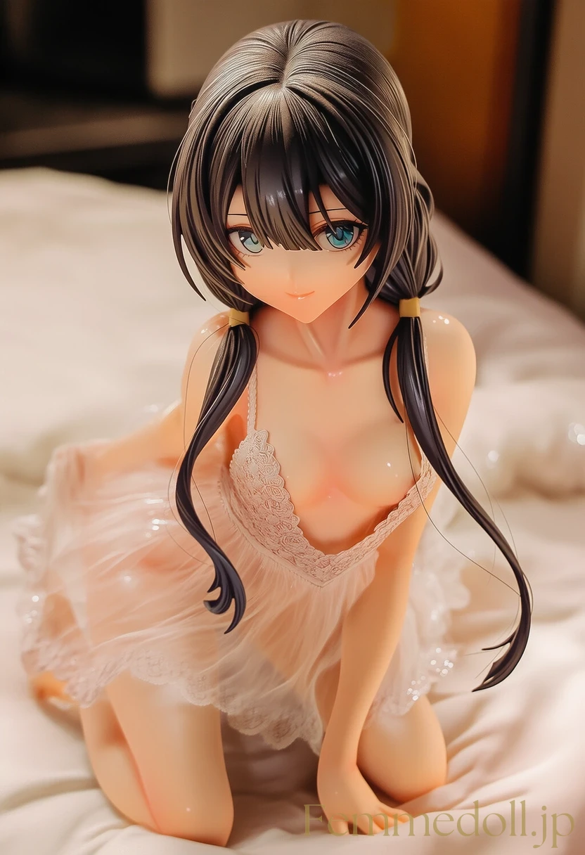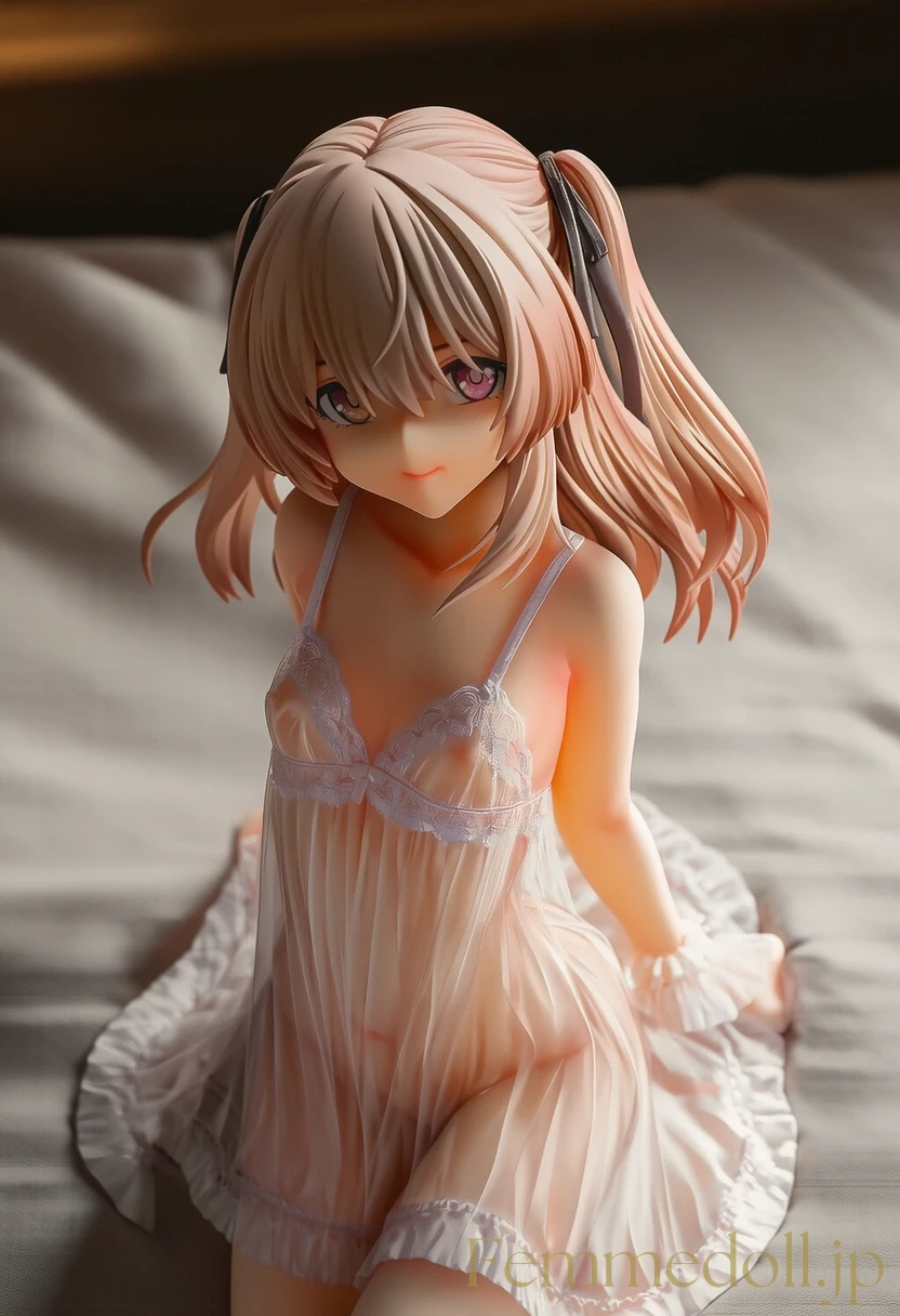 柔らかな照明が灯る可愛いベッドルームで、小柄な少女はスケスケのレースランジェリーを纏い、シーツに膝立ちで誘う。金色のツインテールが肩に落ち、大きな青い瞳が潤んで見つめ、貧乳のフラットな胸元が透け布地越しに微かに揺れる。幼い頰を赤らめ、指を唇に当てながら「お兄ちゃん、触れて?」と甘く囁く姿が、禁断の魅力を放つ。ファンタジー風のフリルベッドが世界観を彩り、内気な少女の好奇心がエロティックに爆発。AIで描かれた30枚のバリエーションで、視線のグラデーションと布地の微妙な透け具合を堪能せよ。