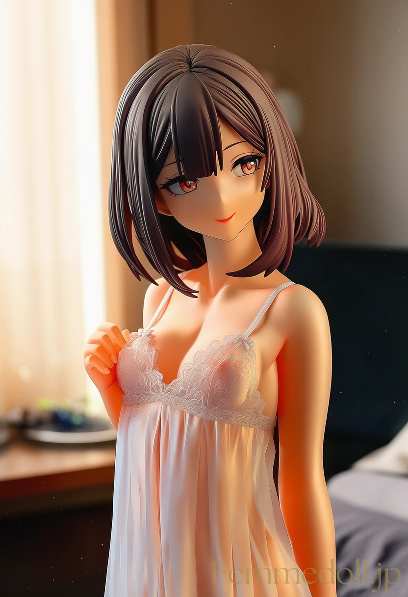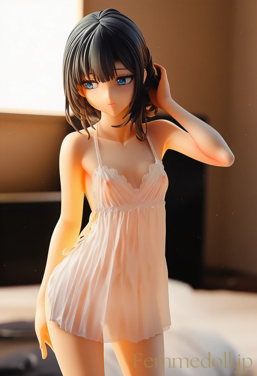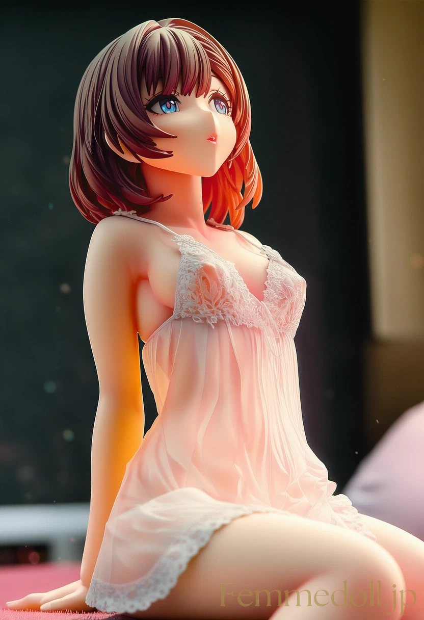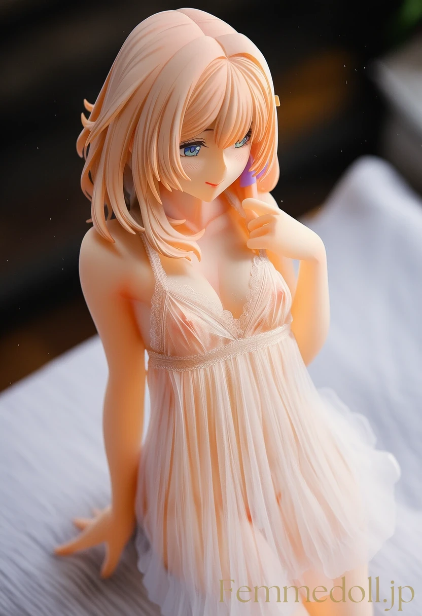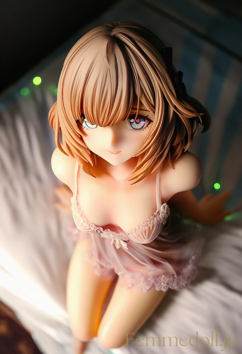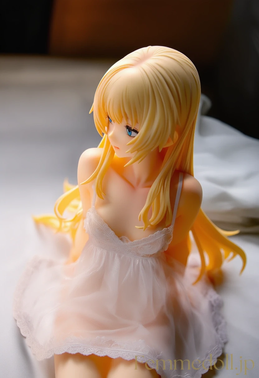 柔らかな照明が灯る可愛いベッドルームで、小柄な少女はスケスケのレースランジェリーを纏い、シーツに膝立ちで誘う。金色のツインテールが肩に落ち、大きな青い瞳が潤んで見つめ、貧乳のフラットな胸元が透け布地越しに微かに揺れる。幼い頰を赤らめ、指を唇に当てながら「お兄ちゃん、触れて?」と甘く囁く姿が、禁断の魅力を放つ。ファンタジー風のフリルベッドが世界観を彩り、内気な少女の好奇心がエロティックに爆発。AIで描かれた30枚のバリエーションで、視線のグラデーションと布地の微妙な透け具合を堪能せよ。