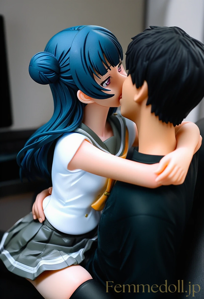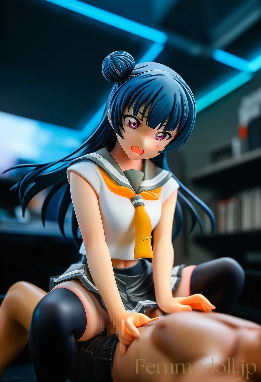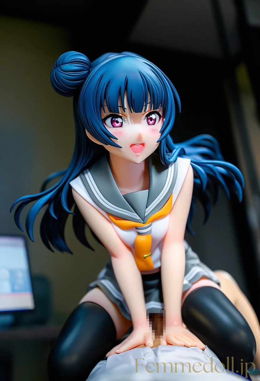 堕天使ヨハネこと津島善子が、愛しいあなたと二人きりのプライベート空間で心も体も解放。紺色のロングヘアーを乱れさせ、右側の特徴的なお団子が少し崩れながらも、ピンクの瞳で熱く見つめ合う。普段の中二病なクールさはどこへやら、頰を赤らめ甘い吐息を漏らす彼女に優しく抱きしめられ、ラブラブなキスから始まる濃厚な愛撫へ。互いの体温を感じ合い、絡みつくような手つきで快楽を分け合う至福の時間。ヨハネの小さな悪魔的な微笑みが、愛情たっぷりのエッチな表情に変わる瞬間をたっぷり堪能しよう。(